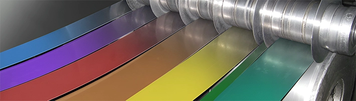 На штрипс наносятся различные виды полимерных покрытий, каждое из которых обладает уникальными эксплуатационными характеристиками. Основная технология нанесения – Coil Coating непрерывное нанесение покрытия на рулонный металл. В этом процессе лента проходит через систему валков для нанесения грунта и финишного слоя, а затем термообрабатывается в печи.