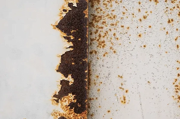 Полимерные покрытия могут наноситься и на неоцинкованную («чёрную») металлическую ленту, однако такая технология имеет свои особенности и ограничения по сравнению с оцинкованным прокатом. Без цинка металл защищен только барьерным способом (физически – плёнкой полимера). При появлении глубокой царапины до металла «чёрный» штрипс начинает быстро ржаветь под слоем краски (рисунок 3), тогда как цинк обеспечивает электрохимическую защиту.
