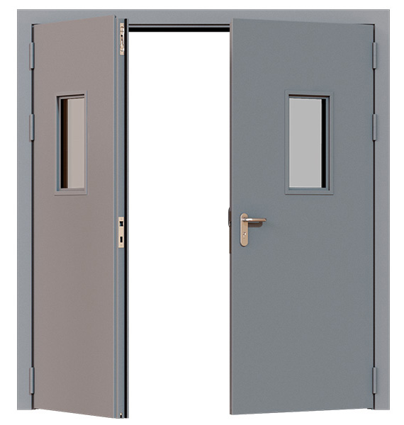 Дверь техническая двупольная остекленная ДМО2-П2 правая с выпадающим порогом