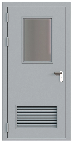 Дверь техническая однопольная остекленная ДМО1-П1 левая с вентиляционной решеткой