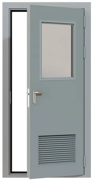 Дверь техническая однопольная остекленная ДМО1-П1 правая с вентиляционной решеткой