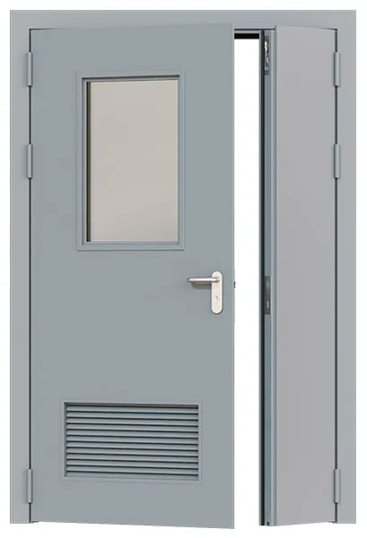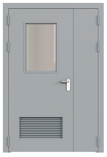 Дверь техническая полуторная остекленная ДМО2-П2 левая с вентиляционной решеткой