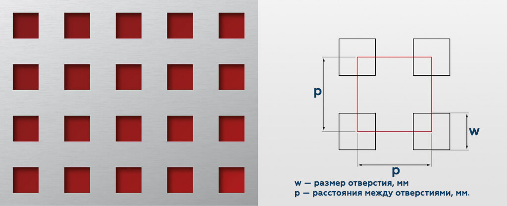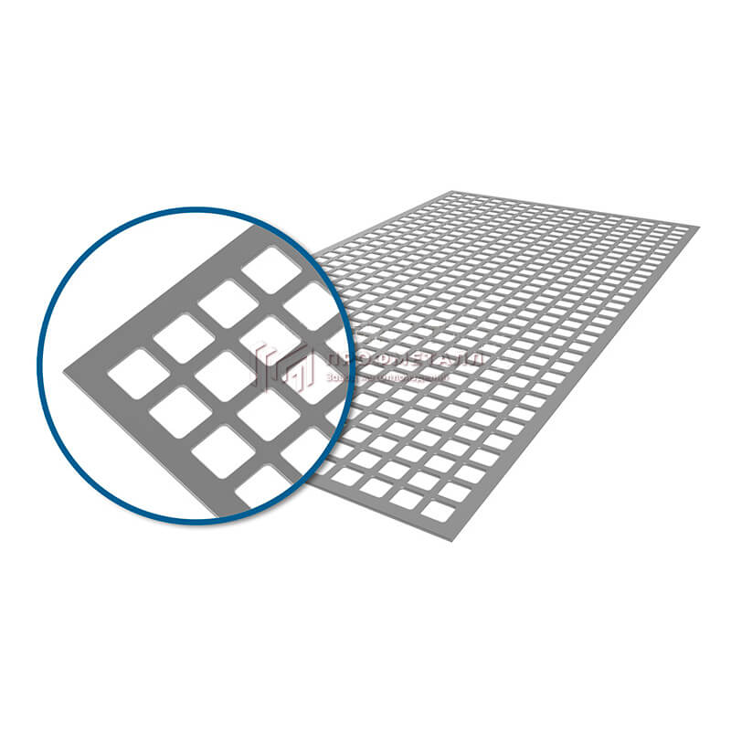 Лист перфорированный Qg 15-20 ― металлический лист с квадратными отверстиями диаметром 15 мм, расположенными в виде прямых рядов с межцентровым расстоянием отверстий 20 мм.