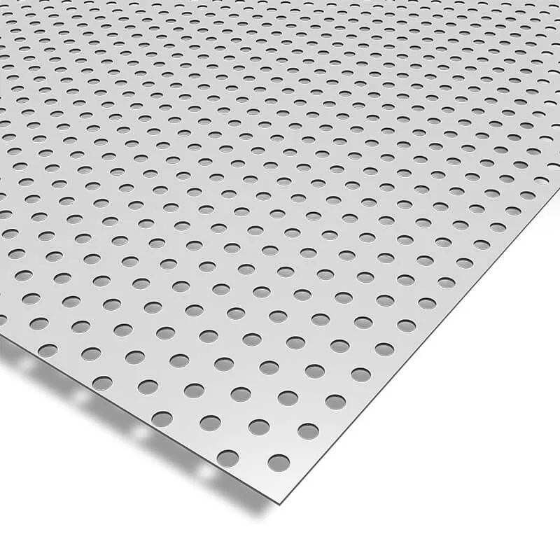 Лист перфорированный Rv 6-13 ― металлический лист с круглыми отверстиями диаметром 6 мм, расположенными в виде смещенных рядов с межцентровым расстоянием отверстий 13 мм.